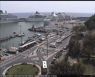 Imagem da webcam do navio, A escala na Madeira é feita antes do regresso a Southampton. O navio italiano